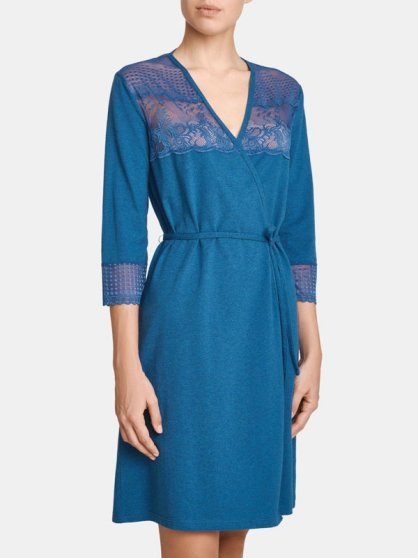 Оптовая продажа. Халат женский с длинными рукавами, с поясом, верхняя часть изделия и манжеты на рукавах декорированы кружевом.