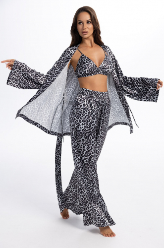 Комбидрес Mia-Amore выполнен из смесового шёлка с анималистичным принтом. По талии комбидрес притален с помощью мягкой резинки с изнанки, по бокам комбидреса декоративные завязки.