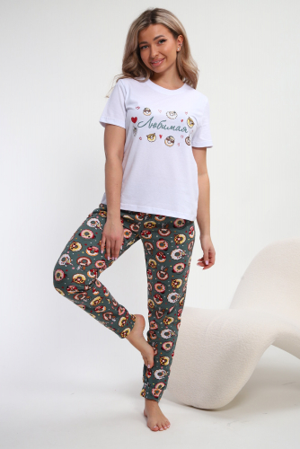 Наша пижама выполнена из мягкого и приятного на ощупь трикотажа, который обеспечивает максимальный комфорт во время сна и отдыха. Материал прекрасно дышит, не вызывает аллергии и раздражения кожи. Благодаря своей структуре он сохраняет тепло в холодное время года, и создает ощущение легкости и свежести в летнее время. Пижама представлена в нескольких размерах, включая большие, чтобы каждая женщина могла найти подходящий вариант, который подходит именно вам.
