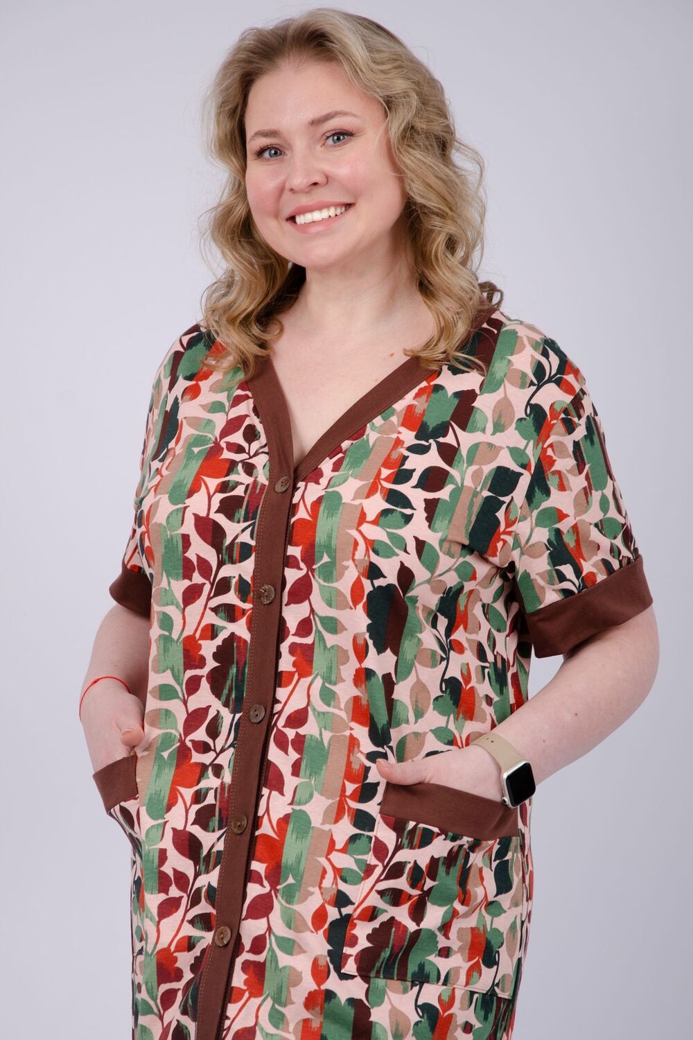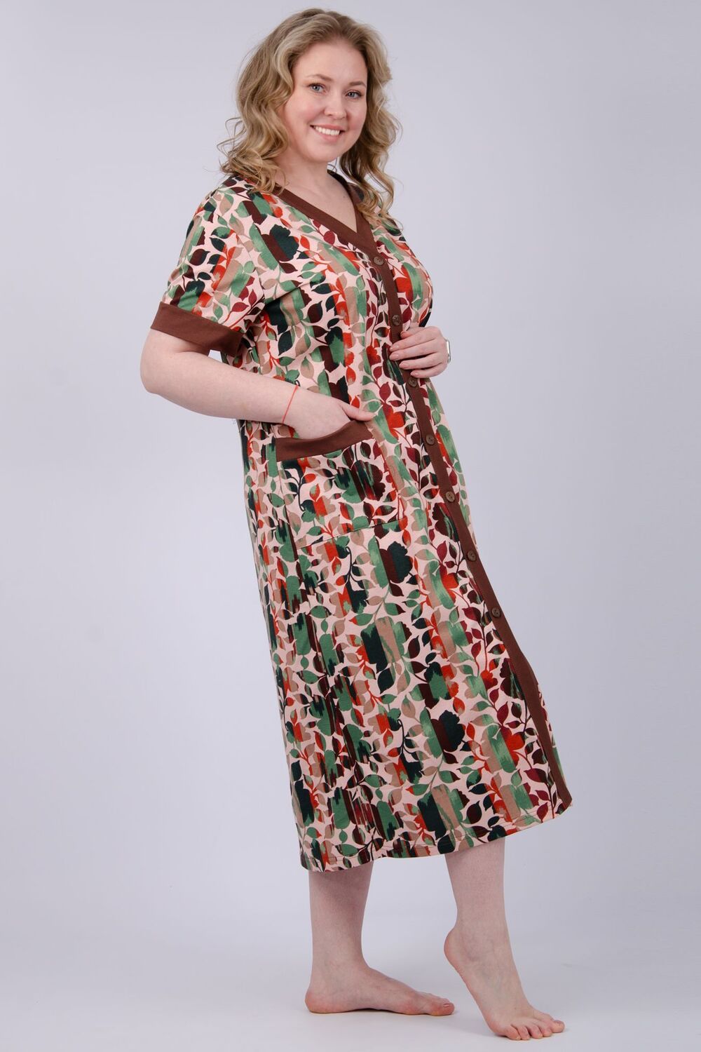 Халат домашний на пуговицах - это идеальный выбор для комфортного и стильного проведения времени дома. Созданный из 100% хлопка, этот халат дает не только мягкость и приятную на ощупь фактуру, но и отличную дышащую способность, обеспечивая максимальное удобство в любое время года. Халат оснащен накладными карманами, что делает его практичным выбором для хранения мелочей в доме. Короткие рукава и отсутствие утеплителя делают его идеальным для теплого климата или использования внутри дома. Вид застежки на пуговицы обеспечивает легкость надевания и снятия, а тип ростовки для высоких позволяет халату идеально сидеть на любой фигуре. Этот халат является отличным выбором для тех, кто ценит комфорт и стиль в домашней одежде. Он подходит как для повседневного использования, так и для специальных случаев, например, в роддоме, где необходима удобная и практичная одежда. Цвет: бежевый; Материал: кулирка; Состав: 100% хлопок.