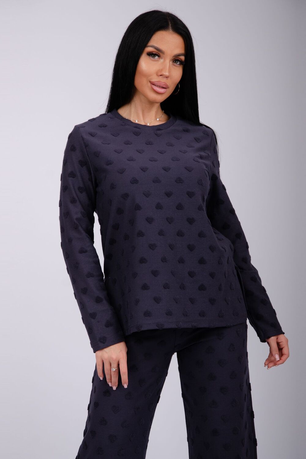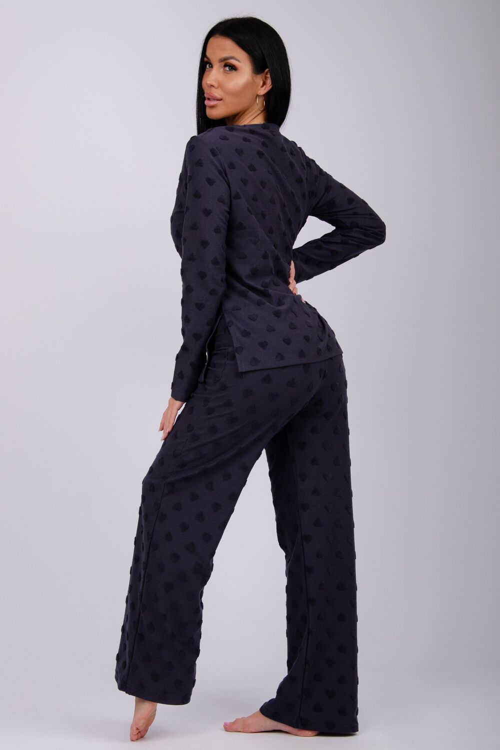 Костюм домашний - сочетание уюта и комфорта, которое понравится и взрослой женщине, и девушке - подростку. Пижама состоит из лонгслива с длинными рукавами с круглой горловиной, и штанов прямого кроя на комфортной резинке по поясу. Пижама сшита из мягкого и теплого полотна (состав: хлопок 100%), доступна в размерах от 44-го до большого 54-го, чтобы женщины и девушки с фигурой любого типа и комплекции могли комфортно себя чувствовать. Пижама с кофтой и прямыми брюками прекрасно подойдет для дома, для вечерних и повседневных образов. Мягкий и уютный костюм из нежной махровой ткани. Модная пижама придаст комфорт в любое время года: в зимний, демисезонный и осенний - весенний период. Цвет: розовый;графит; Материал: махра;махра; Состав: 100% хлопок.