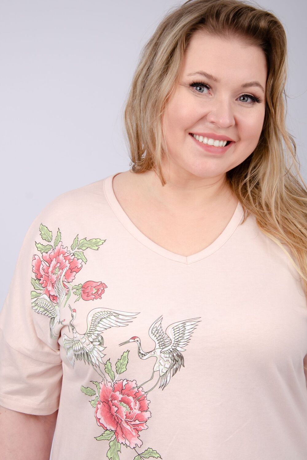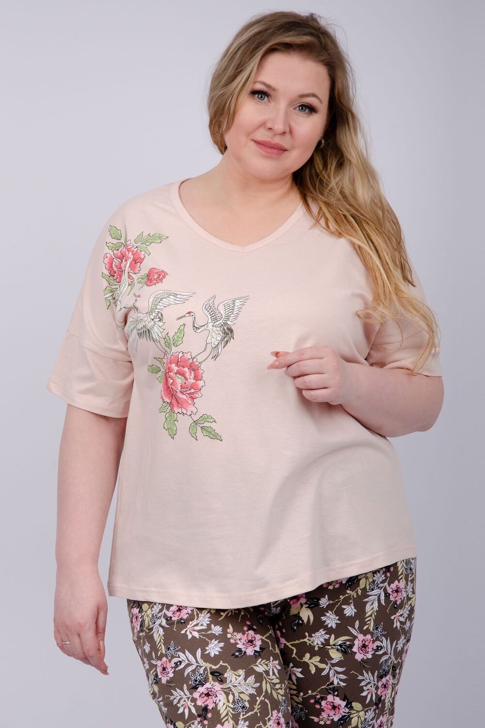 Наша пижама выполнена из мягкого и приятного на ощупь трикотажа, который обеспечивает максимальный комфорт во время сна и отдыха. Материал прекрасно дышит, не вызывает аллергии и раздражения кожи. Благодаря своей структуре он сохраняет тепло в холодное время года, и создает ощущение легкости и свежести в летнее время. Пижама представлена в нескольких размерах, включая большие, чтобы каждая женщина могла найти подходящий вариант, который подходит именно вам. Цвет: бежевый; Материал: кулирка;кулирка; Состав: 100% хлопок.