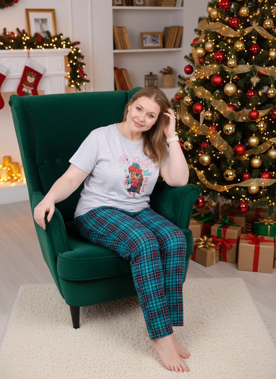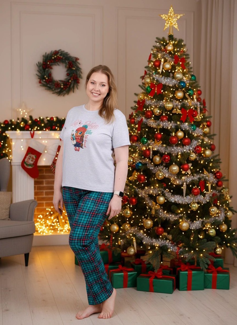 Пижама женская со штанами изготовлена из мягкой ткани (100 % хлопка), которая обладает дышащими и влаговпитывающими свойствами, идеально подходит для сна, обеспечивает максимальную практичность и воздухопроницаемость, облегчая сон даже в самые жаркие и холодные ночи. Женский домашний костюм состоит из стильной тонкой ночной футболки с коротким рукавом и легких брюк, которые создают комфортный домашний уют дома. Милая женская пижамка украшена стильным принтом. Пижама женская яркая и в тоже время нежная, идеальна для беременных, будущих мам или в роддом, ведь в этой пижаме для беременных удобно весь день. Носить можно в любое время года: осенью или даже зимой под согревающим одеялом. Цвет: светло-серый меланж; Материал: кулирка;кулирка; Состав: 100% хлопок.