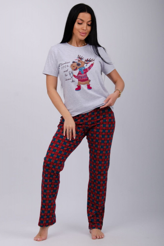Наша пижама выполнена из мягкого и приятного на ощупь трикотажа, который обеспечивает максимальный комфорт во время сна и отдыха. Материал прекрасно дышит, не вызывает аллергии и раздражения кожи. Благодаря своей структуре он сохраняет тепло в холодное время года, и создает ощущение легкости и свежести в летнее время. Цвет: светло-серый меланж; Материал: кулирка;кулирка; Состав: 100% хлопок.