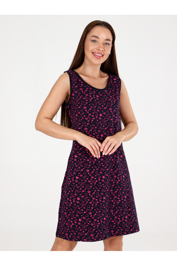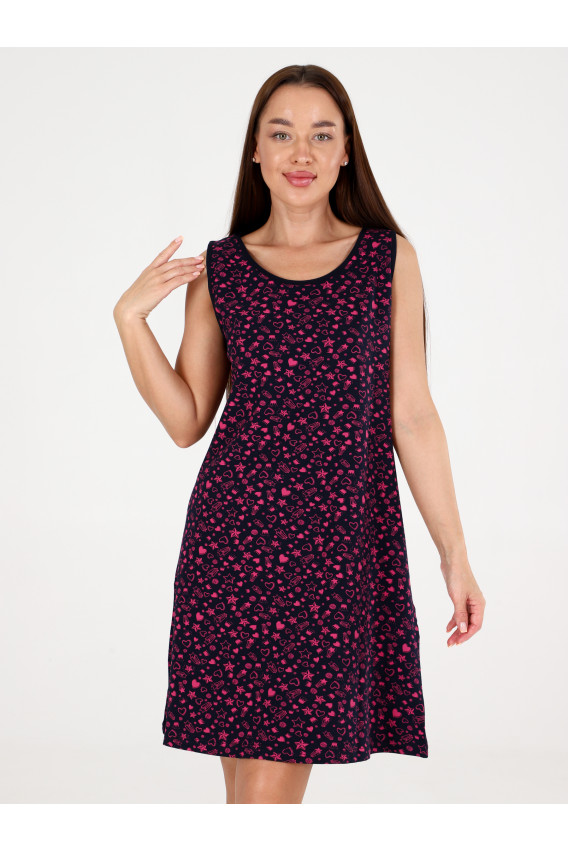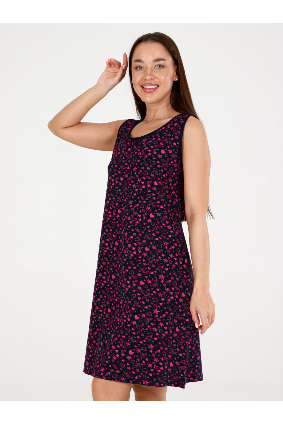 Майка сорочка удлиненная, синий, сердечки Ж-4520