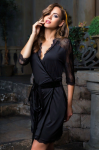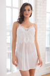 Короткая сорочка Миа-Миа из комбинации плотного трикотажа и полупрозрачной сетки в виде вставок по бокам, которые визуально делают фигуру более стройной. По сетке спереди выполнены по паре вертикальных защипов. На спинке декоративная застежка с пуговицами-стразами придает неповторимый вид этой модели. Чашки выполнены из кружева. Низ сорочки оформлен изысканным, тонким кружевом.
