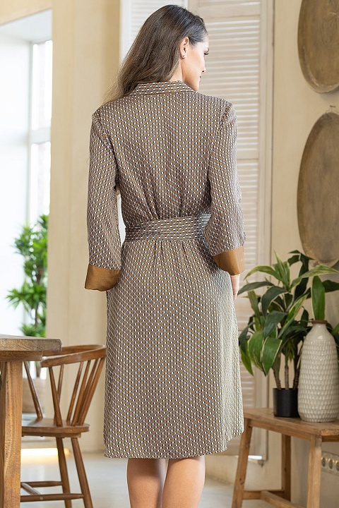 Удлиненная рубашка Mia-Amore свободного силуэта с рукавом длиной ¾ и фигурной линией низа. Изделие выполнено из тканой принтованной вискозы c шелком и дополнено однотонной отделкой. В боковых швах обработаны карманы. Также есть небольшие разрезы по низу изделия для свободы движения. Линию талии можно подчеркнуть за счет пояса, который идет в комплекте.