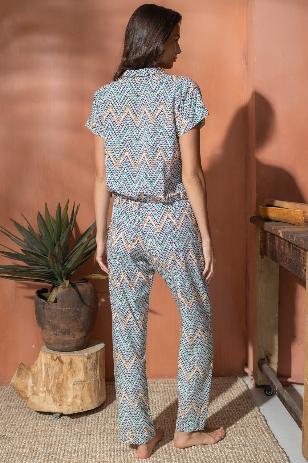 Комплект рубашка с брюками Mia-Amore выполнен из принтованного вискозного полотна. Рубашка с центральной застежкой на пуговицы и кулиской по низу, с удлиненными цельнокроенными рукавами. Брюки силуэта mom с карманами и удобным поясом на резинке.