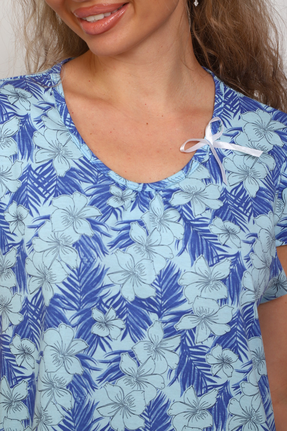 Ночная сорочка из хлопка кулирка пенье. Свободного силуэта, рукав крылышко, движения свободны, легкость и комфорт. Стирка при 30С. Цвет: синий; Материал: кулирка пенье;кулирка пенье; Состав: 100% хлопок.