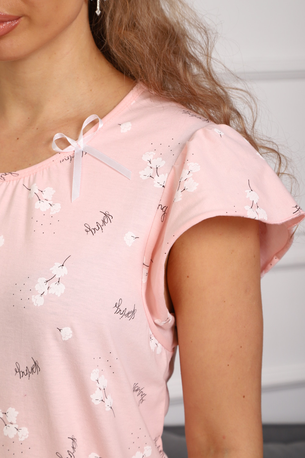 Ночная сорочка из хлопка кулирка пенье. Свободного силуэта, рукав крылышко, движения свободны, легкость и комфорт. Стирка при 30С. Цвет: розовый; Материал: кулирка пенье;кулирка пенье; Состав: 100% хлопок.