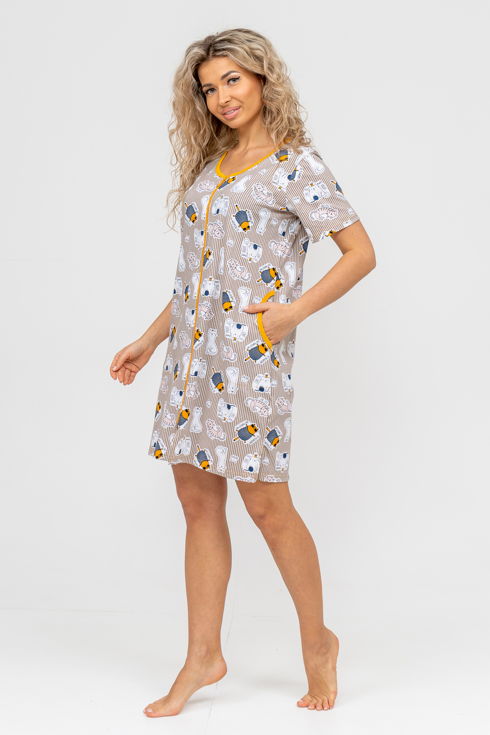 Женский халатик модных трендовых расцветок выполнен из 100% хлопчатобумажной ткани, что обеспечивает максимальный комфорт при ношении. Отличается мягкостью и приятной на ощупь текстурой. Материал прекрасно дышит. Носить такой халатик Вы сможете как летом, так и в любой другой сезон. Надёжный замок на молнии сохраняет свои свойства в течении всего времени использования. Женственный вырез и 2 боковых кармана добавляют образу шарм и делают изделие удобным и практичным. Изысканный, средней длины халатик подойдёт для любого типа фигуры. Отличная модель для дома, для роддома, после родов, для кухонных дел и хозяйственной уборки, для дачи. И конечно идеально после душа, сауны, бани и ванной. А так же будет замечательным подарком на любой праздник: 14 февраля, день рождения, 8 марта. Рекомендуется стирать в деликатном режиме 30 С. Это поможет избежать деформации и сохранить яркость цвета. Цвет: бежевый;синий; Материал: кулирка;кулирка; Состав: 100% хлопок.