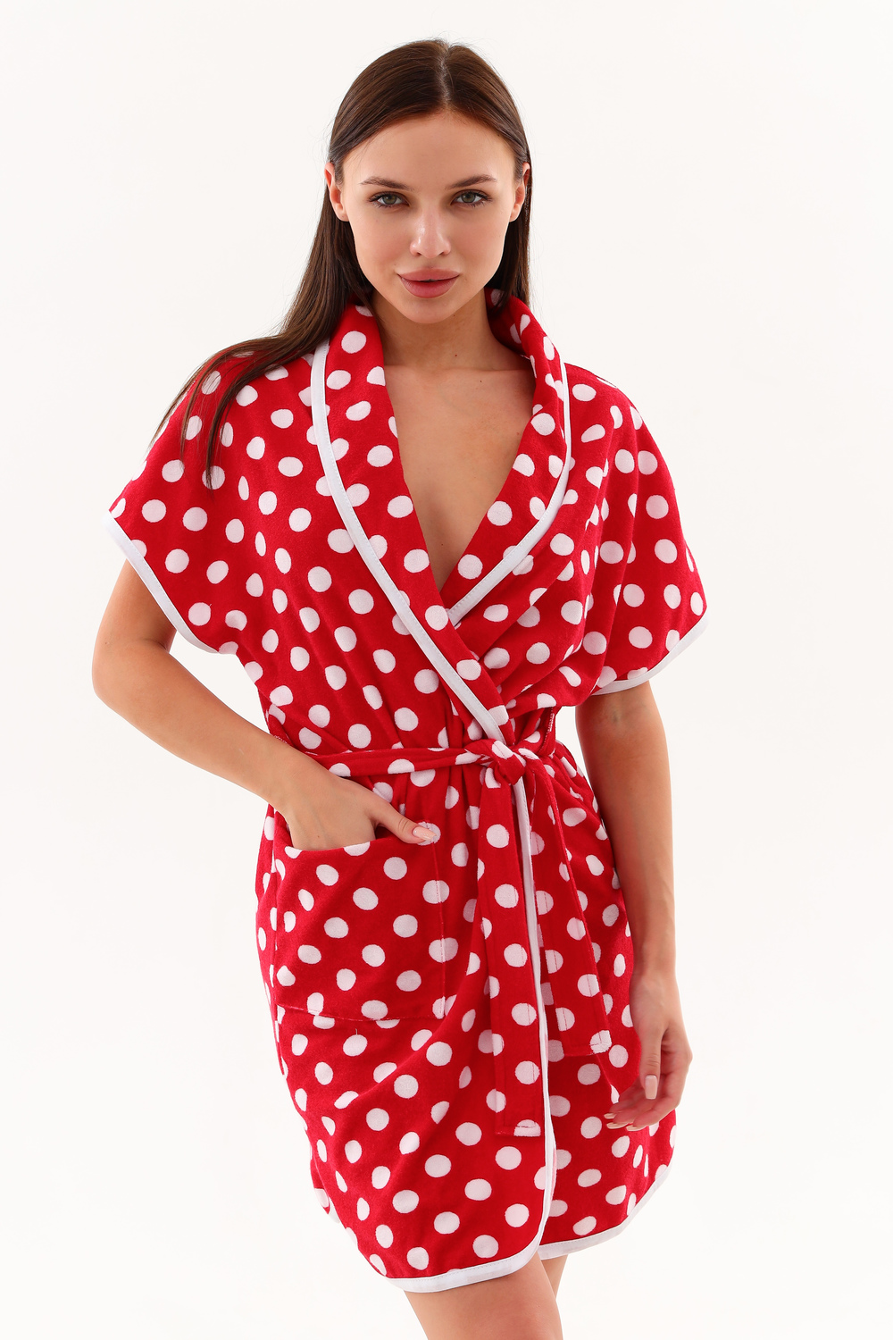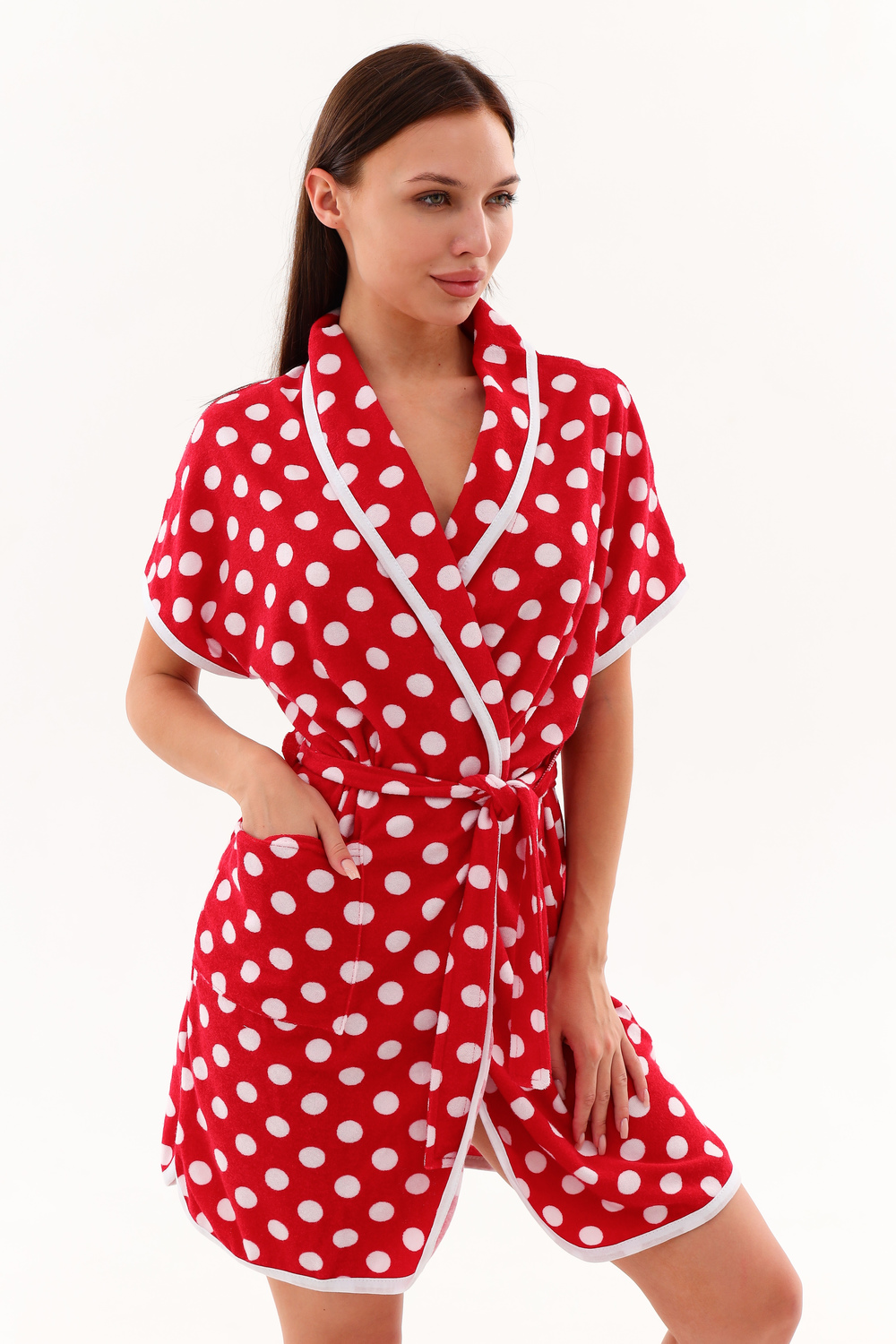 Женский махровый халат на запах, с накладным карманом. Воротник шалька, спущенный рукав. Размерный ряд имеет большие размеры. Ткань - махра. Цвет: красный; Материал: махра;махра; Состав: 80% хлопок, 20% п/э.