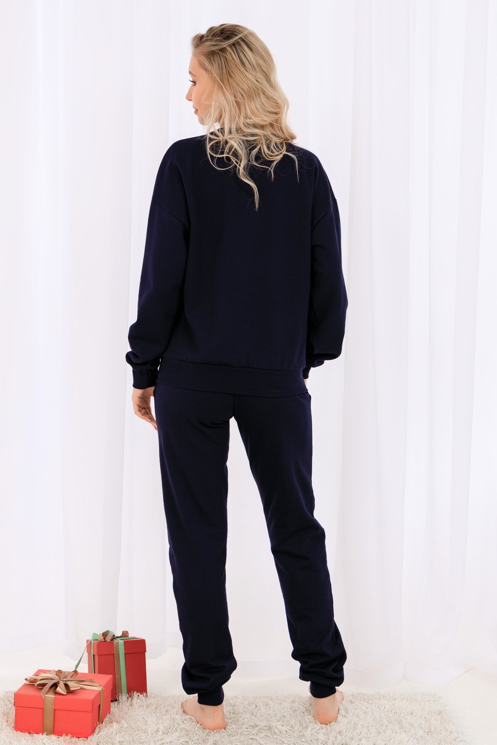 Олени - неотъемлемый атрибут Рождества. Традиция использовать в новогоднем убранстве рождественских оленей завоевала большую популярность во всём мире. В этом уютном удобном костюме из футера с начёсом комфортно находиться в домашней обстановке. В нём можно встретить праздник, использовать в повседневной носке, в качестве подарка. Костюм состоит из свитшота свободного кроя и брючек с карманами в боковых швах. Все манжеты на костюме выполнены из плотной рибаны с лайкрой. Пояс обработан плотной резинкой 3см. После стирки может быть небольшая усадка, поэтому имеется напуск. Длина рукава в измерениях указана от основания шеи. Цвет: темно-синий;красный; Материал: футер 2-х нитка с начесом;футер 2-х нитка с начесом; Состав: хлопок 100%.