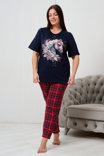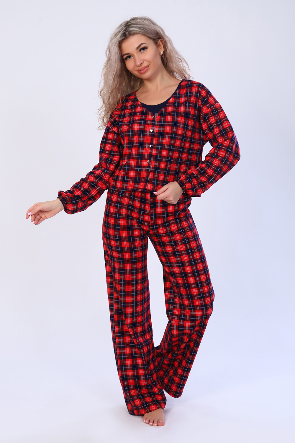 Женский костюм 3-ка из 100% хлопчатобумажного полотна в клетку - это идеальный вариант поднять настроение себе и окружающим! Стильный домашний комплект с брюками - незаменимая вещь в гардеробе каждой модницы. Костюм состоит из рубашки, майки и брюк палаццо. Рубашка с V-образным вырезом, длинным рукавом на резинке и застёгивающаяся на современные кнопки. Майка классическая, однотонная, без рукава. И конечно брюки палаццо успешно конкурирующие с другими моделями. Пояс брюк выполнен на специализированной поясной машине, по бокам имеются вместительные карманы. Комплект хорошо садится на любую фигуру, удобный крой позволяет чувствовать себя свободно, а всеми любимая расцветка придаёт образу лёгкость и романтичность. Цвет: клетка; Материал: кулирка;кулирка; Состав: 100% хлопок.