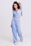 Костюм состоит из брюк и футболки. Брюки широкие с карманами. Футболка с короткими рукавами с манжетами. Идеальный повседневный вариант. Цвет: сиреневый; Материал: кулирка;кулирка; Состав: 100% хлопок.