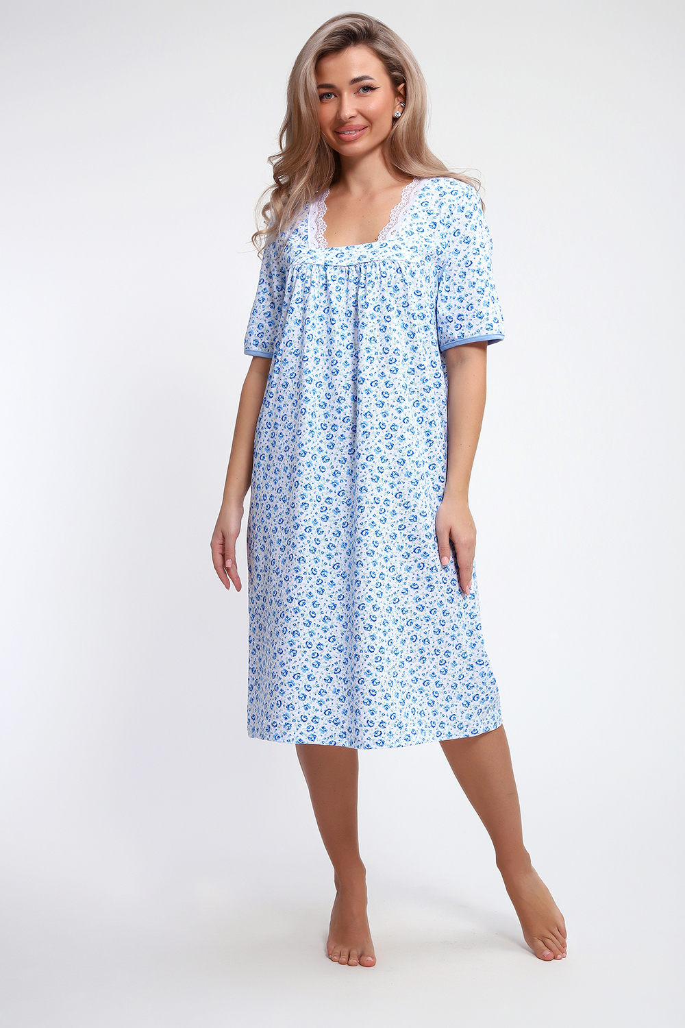 Сорочка хлопковая кулирка, белоземелька, декорирована эластичным кружевом по горловине. Цвет: голубой;розовый; Материал: кулирка; Состав: 100% хлопок.