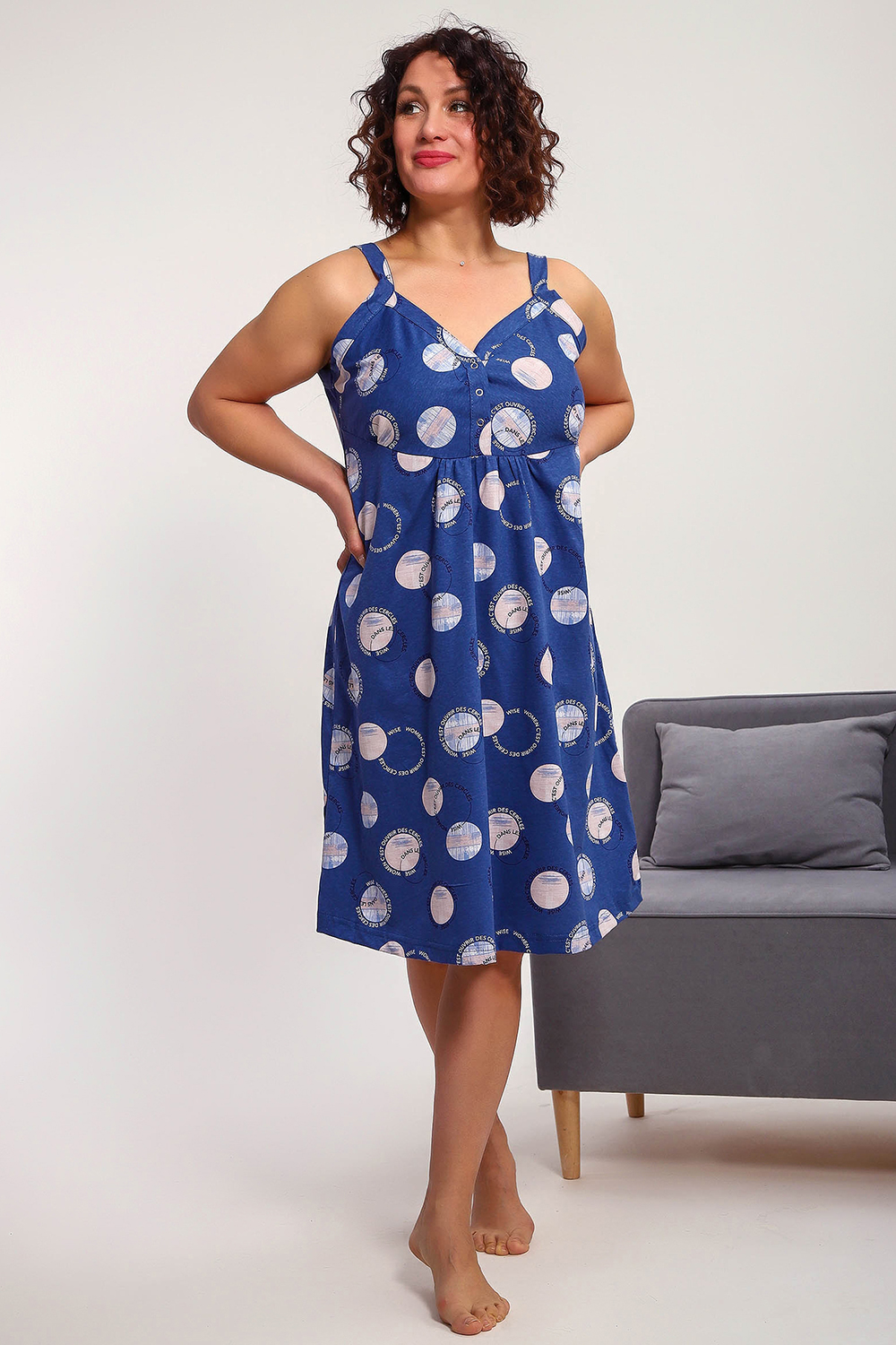 Сорочка женская без рукава на широких брителях . Данная модель выполнена из трикотажного полотна кулирка ( хлопок 100%). Полочка отрезная с кнопками. Горловина обработана широкой окантовкой. Отличная модель для сна и кормления. Цвет: индиго;белый; Материал: кулирка;кулирка; Состав: хлопок 100%.