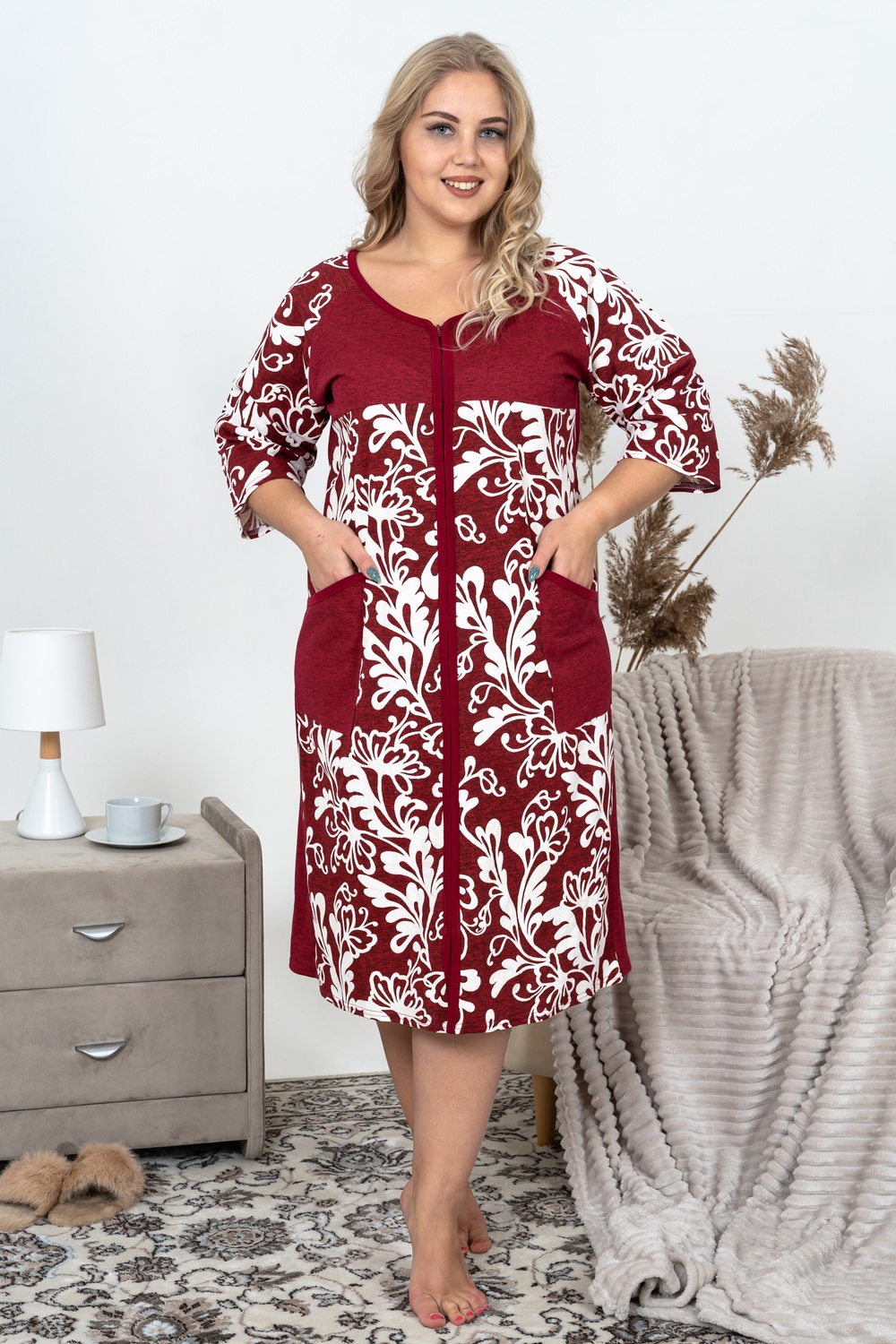 Халат, который вы искали! Удобная и женственная модель для любительниц классического стиля выполнена из качественного хлопка. Халат домашний средней длины с комфортной посадкой по фигуре. На молнии, с боковыми накладными карманами, рукав 3/4. Приятная цветовая гамма модели подойдет любому цветотипу и вашим близким. Ткань изделия - кулирная гладь 100% хлопок.
