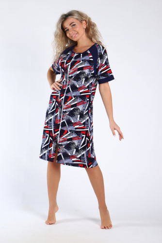 Халат на молнии с короткими рукавами - реглан и карманами в боковых швах. На полочке декоративные вставки и манжеты на рукавах из ткани - компаньона.