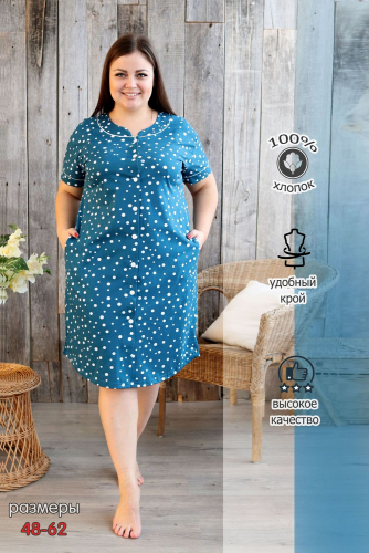 Этот халат выполнен в современном камуфляжном стиле с преобладанием черных и бежевых цветов. Он имеет короткие рукава и длину до колена, что делает его удобным и практичным для повседневного ношения. Спереди халат застегивается на молнию, что обеспечивает легкость надевания и снятия. На боковых сторонах имеются два глубоких кармана с оригинальными овальными прорезями, которые добавляют модели функциональности и стильности. Халат также дополнен поясом, который подчеркивает талию и позволяет регулировать посадку по фигуре. Материал, из которого изготовлен халат, мягкий и приятный к телу, что обеспечивает комфорт при носке.
