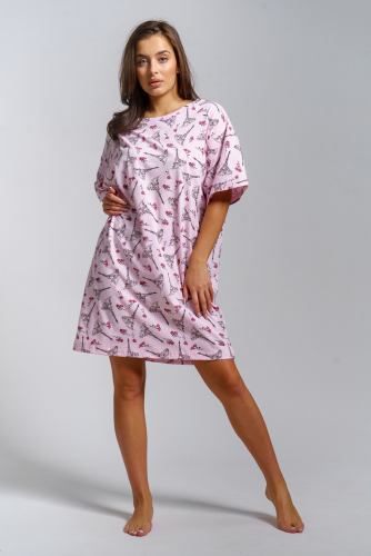 Теплая и приятная к телу сорочка из футера с начесом. Длинный рукав, кокетка с планкой на пуговицах. Фасон достаточно свободный за счет защипов на полочке. Низ изделия фигурный, подшит на плоскошовной машине. Горловина и рукава обработаны окантовкой.