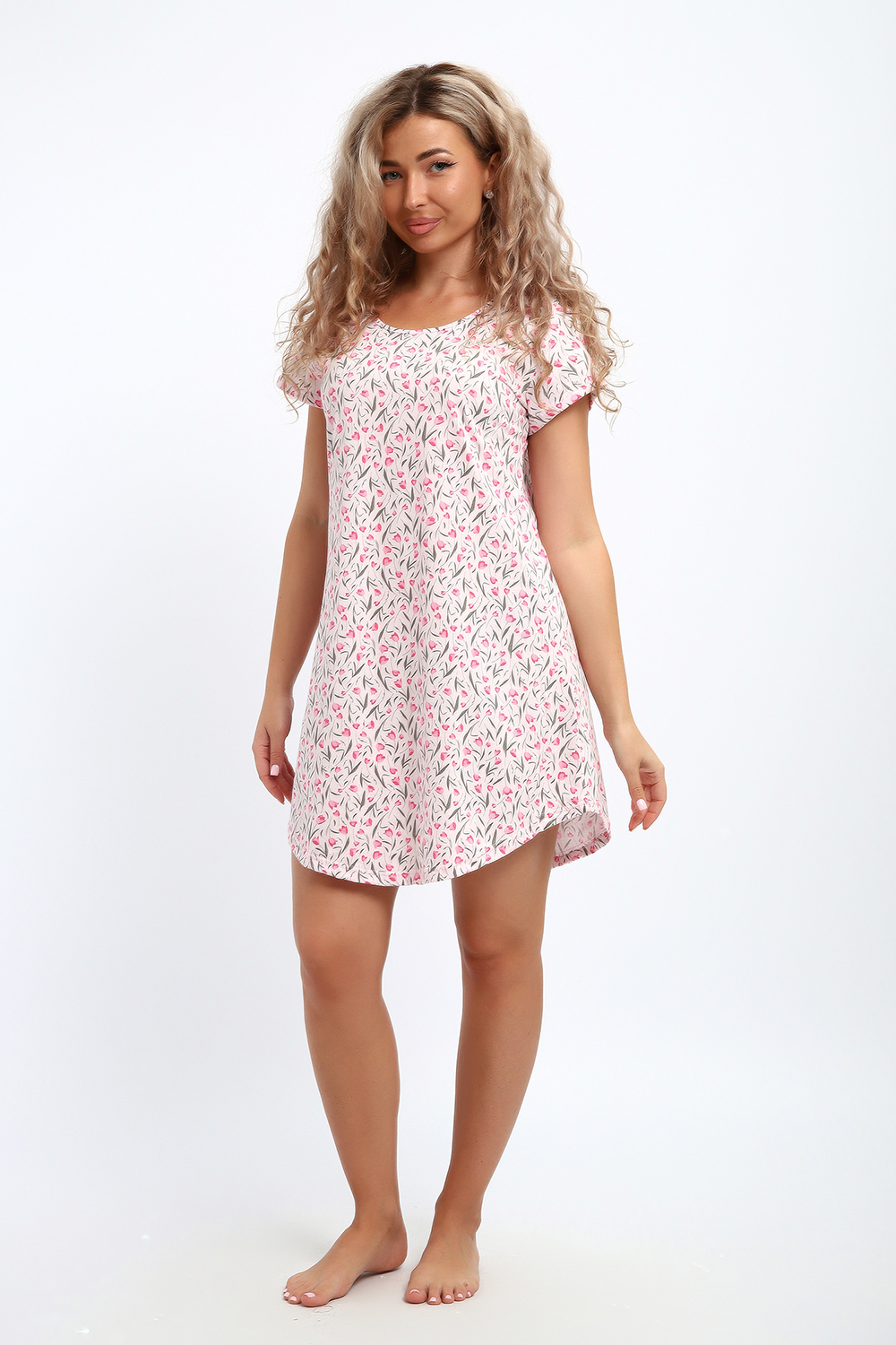 Сорочка маечного фасона с коротким рукавом и закругленным подолом. Подходит для сна и отдыха.