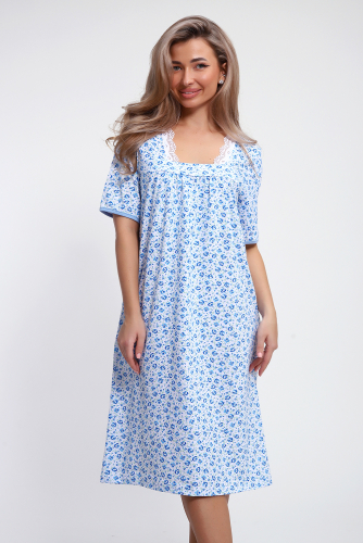 Сорочка хлопковая кулирка, белоземелька, декорирована эластичным кружевом по горловине.