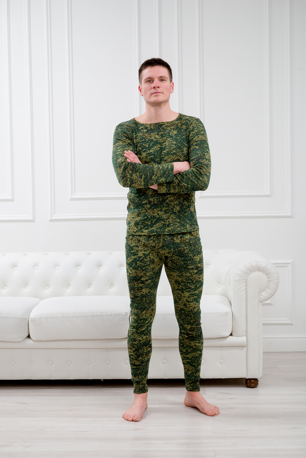 Нательное белье футболка с длиным рукавом и кальсоны из рибаны с начесом камуфляж