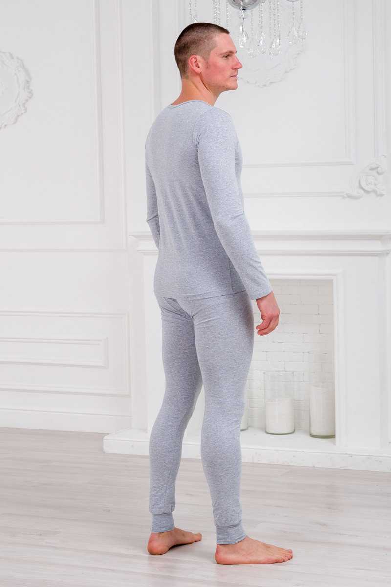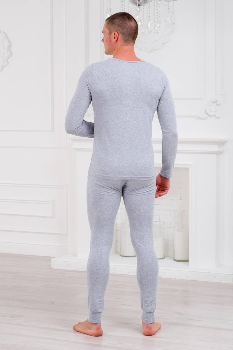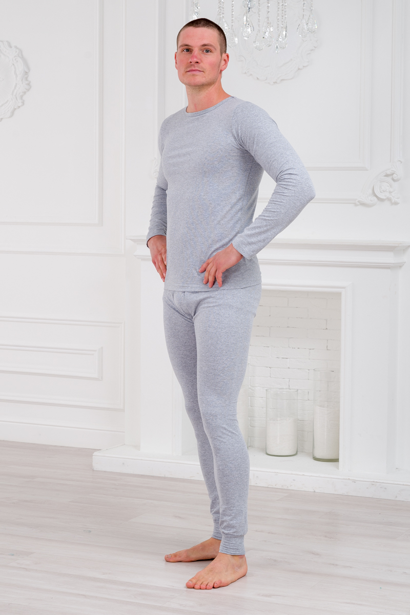 Нательное белье футболка с длиным рукавом и кальсоны кулирка с лайкрой серый меланж