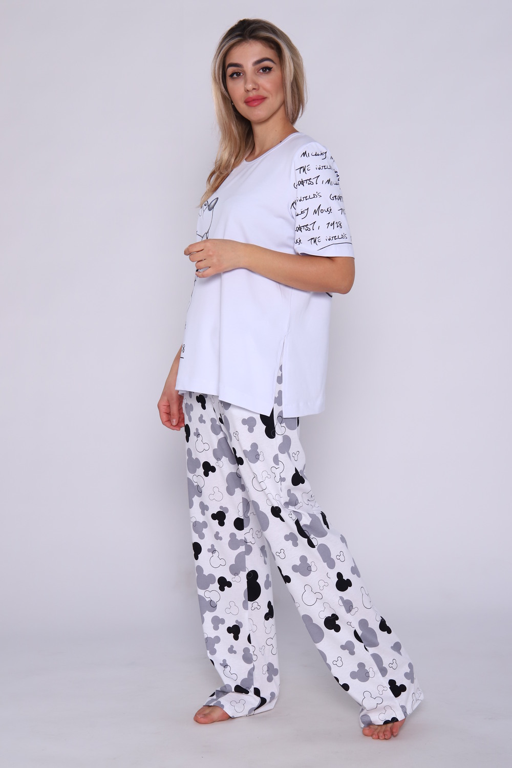 Домашний костюм с брюками и удлиненной футболкой с разрезами по бокам. Идеальный вариант для домашних вечеров. Модель выполнена кулирного гладья с лайкрой. Цвет: белый; Материал: кулирка с лайкрой;кулирка с лайкрой; Состав: 92% хлопок, 8% лайкра.