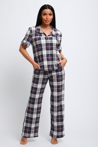 Пижама свободного кроя с шортами и футболкой. Футболка с вточным, спущенным рукавом и глянцевой печатью в стиле шелкографии. Шорты на резинке с карманами.