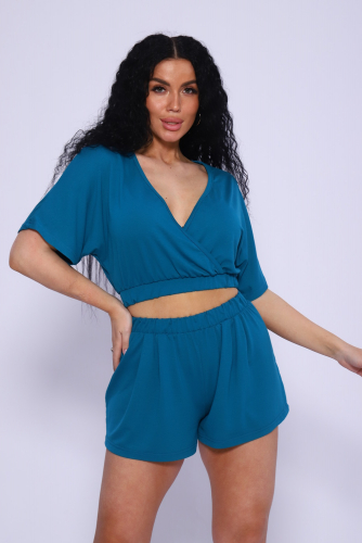 Домашний костюм с удлиненной футболкой с коротким рукавом и бриджами с боковыми карманами.
