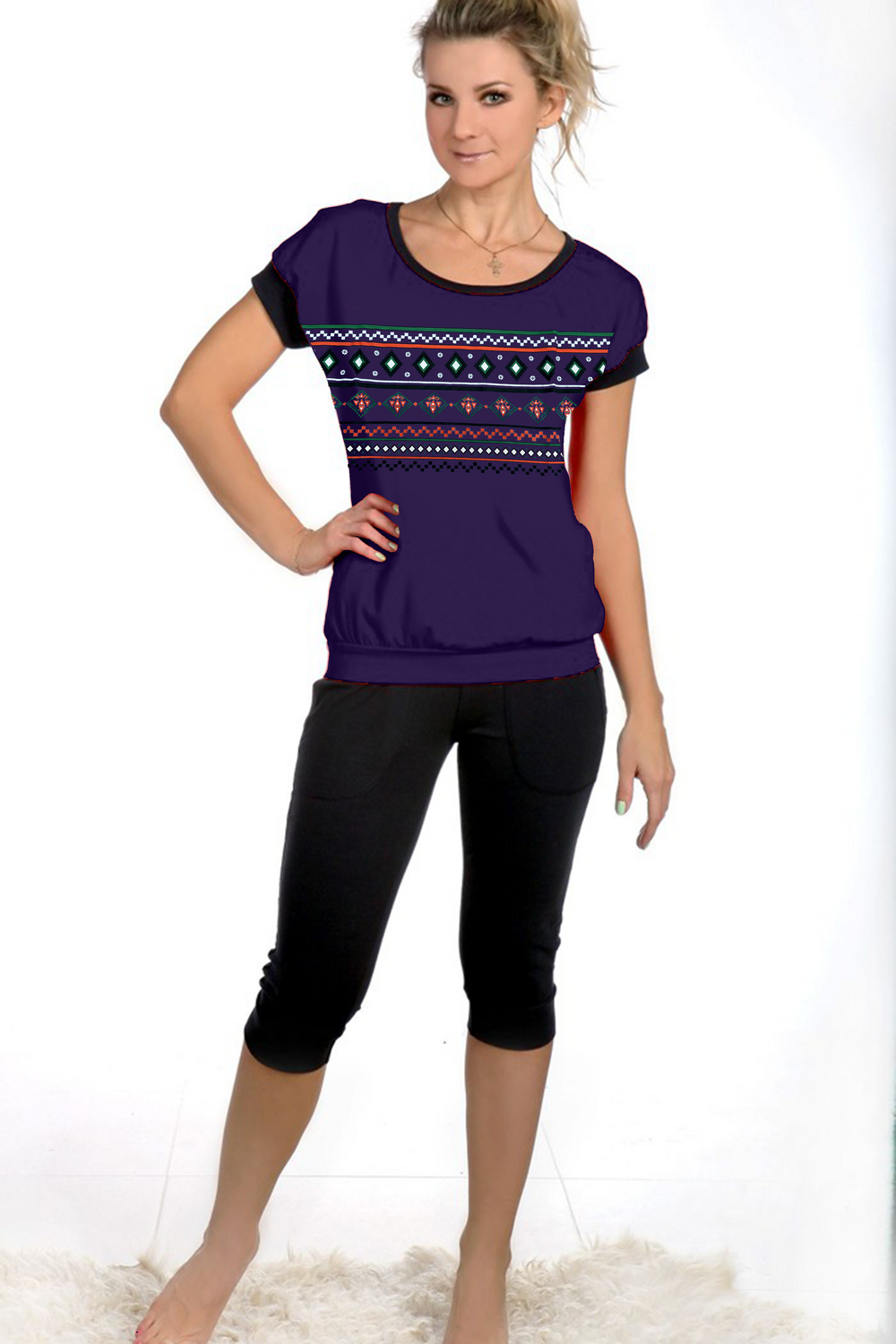 Женская пижама с бриджами и футболкой с коротким рукавом - идеальный баланс стиля и уюта. Модель выполнена из высококачественного кулирного волокна. Комфортный фасон и аккуратный дизайн Цвет: изумрудный;желтый;розовый;синий;фиолетовый;темно-розовый; Материал: кулирка с лайкрой;кулирка с лайкрой; Состав: 92% хлопок, 8% лайкра.