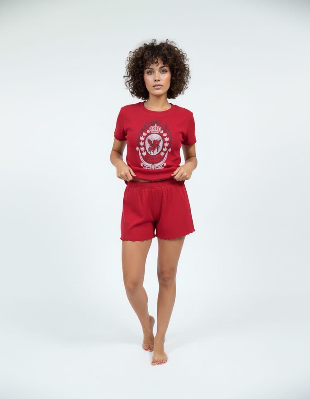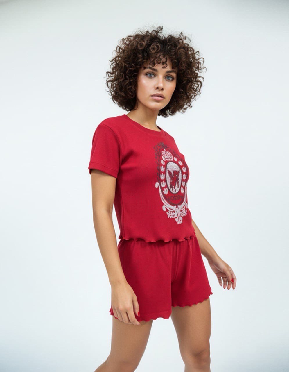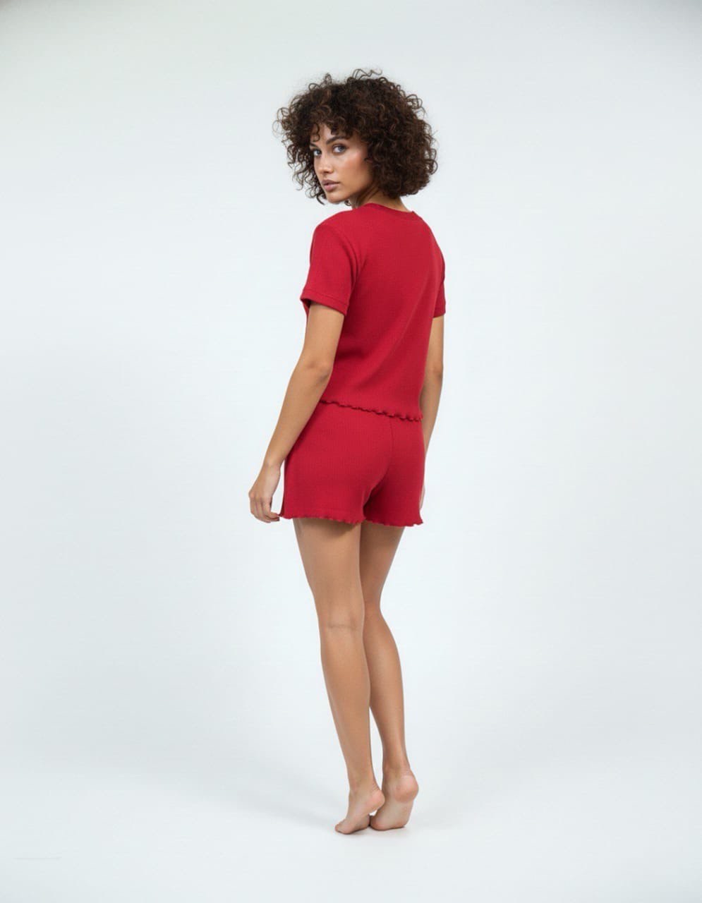 Пижама от бренда NINEL представляет собой комфортное и стильное решение для повседневного ношения дома. Созданная из высококачественной рибаны с добавлением 8% лайкры, эта пижама обеспечивает идеальную воздухопроницаемость и дышащие свойства, делая её идеальной для использования в любое время года. С футболкой и шортами, это изделие подходит как для сна, так и для ленивых выходных дней, обеспечивая при этом элегантный и современный внешний вид. Цвет: красный; Материал: рибана;рибана; Состав: 92% хлопок 8% лайкра.