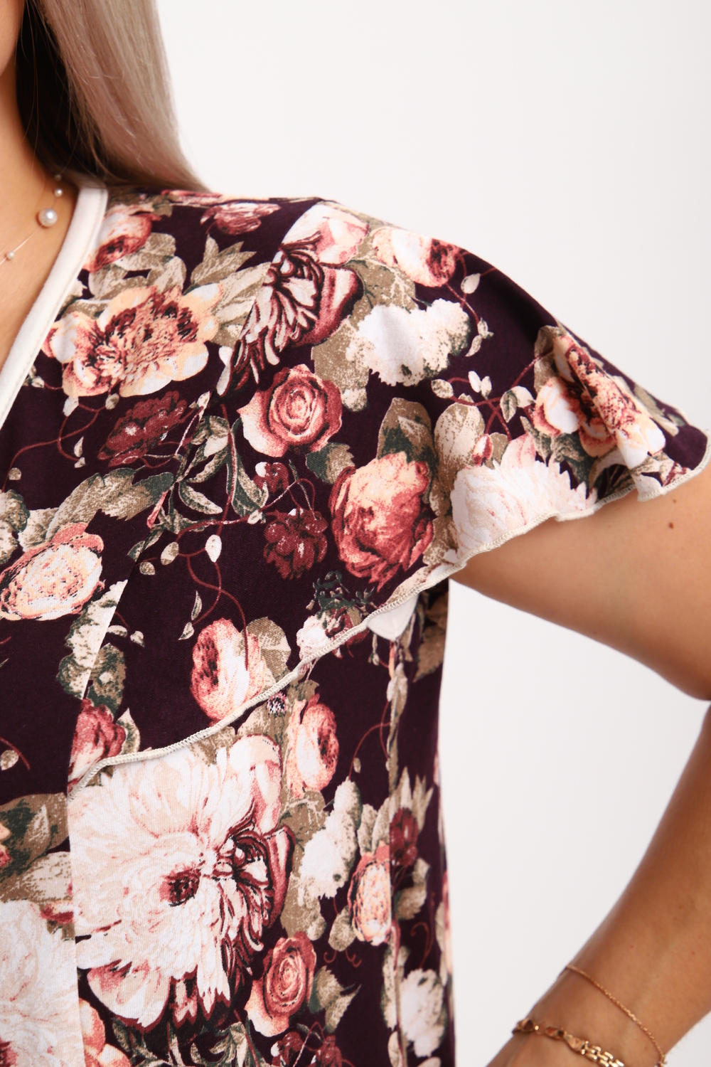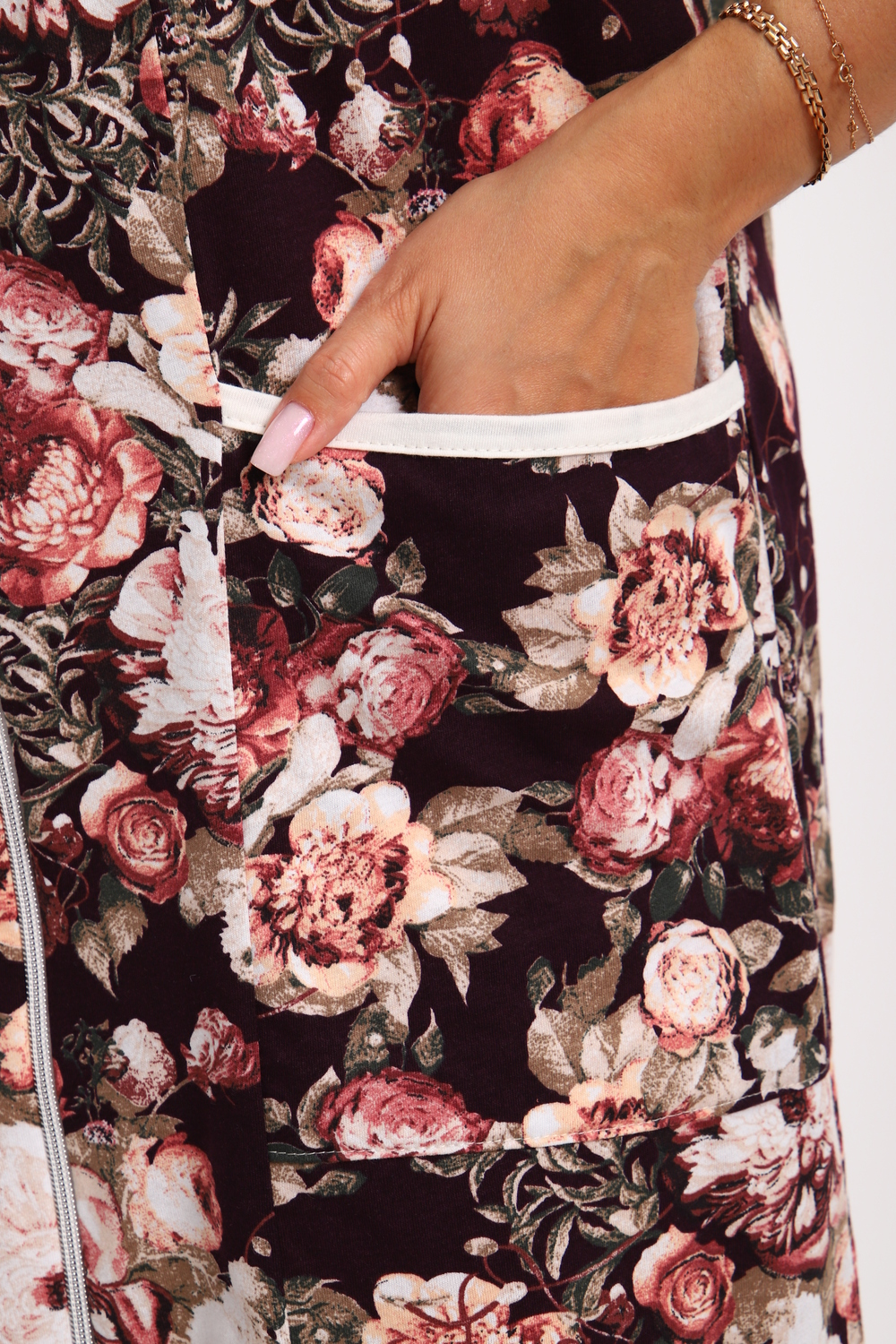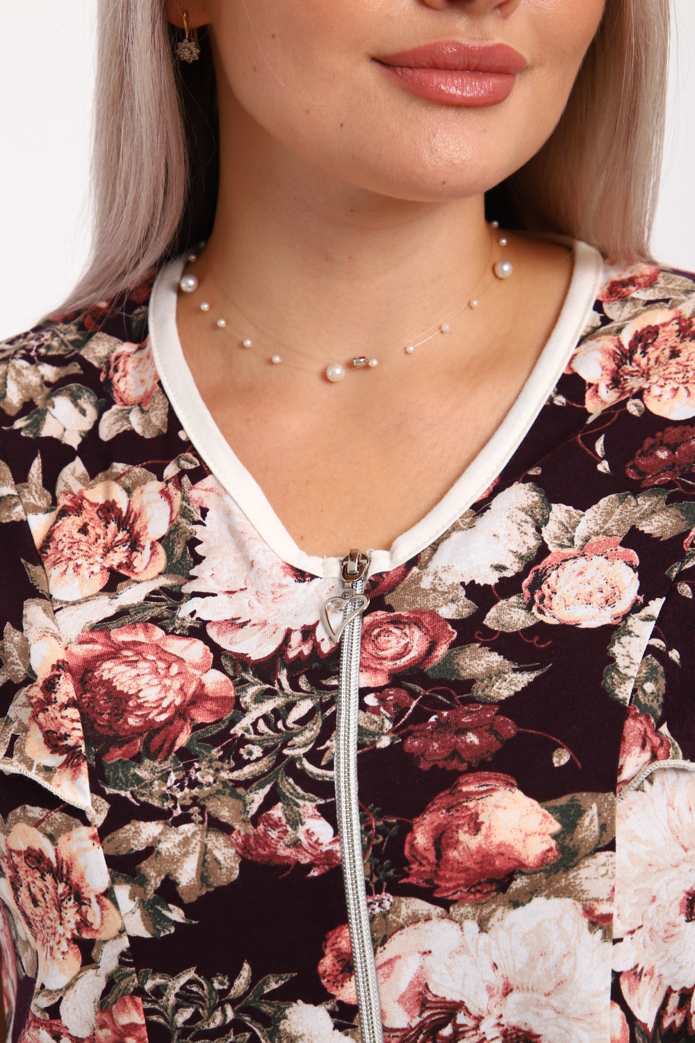 Халат женский на молнии с карманами. Силуэт полуприлегающий ,рукав крылышко. Цвет: коричневый; Материал: кулирка;кулирка; Состав: 100% хлопок.