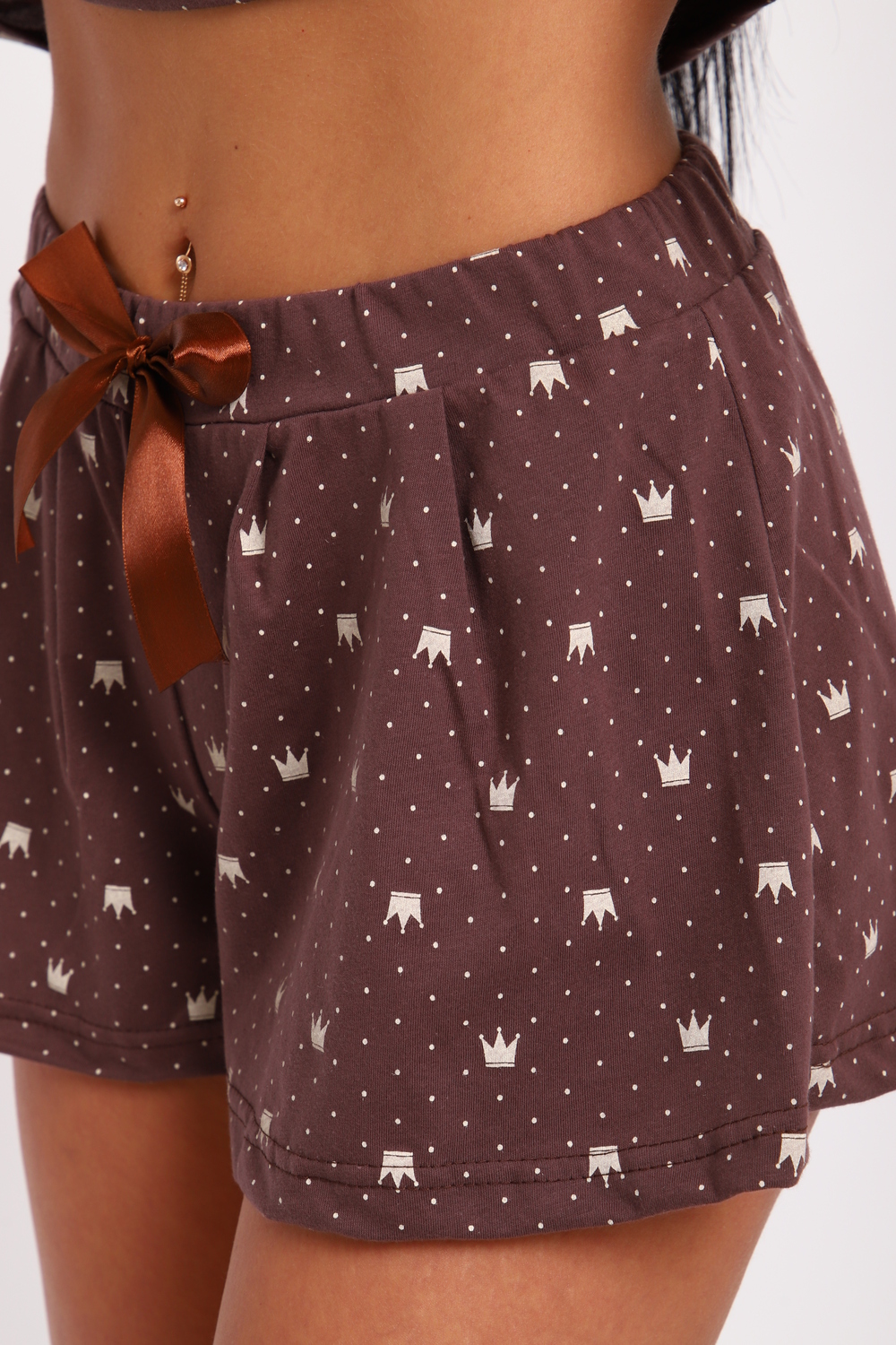 Пижама женская футболка и шорты. Футболка свободного кроя, широкий вырез горловины. Рукав короткий на спущенном плече. Цвет: коричневый; Материал: кулирка;кулирка; Состав: 100% хлопок.