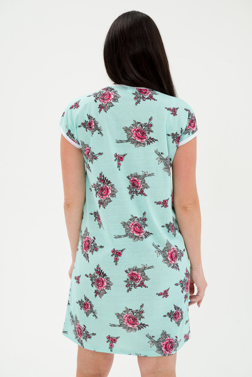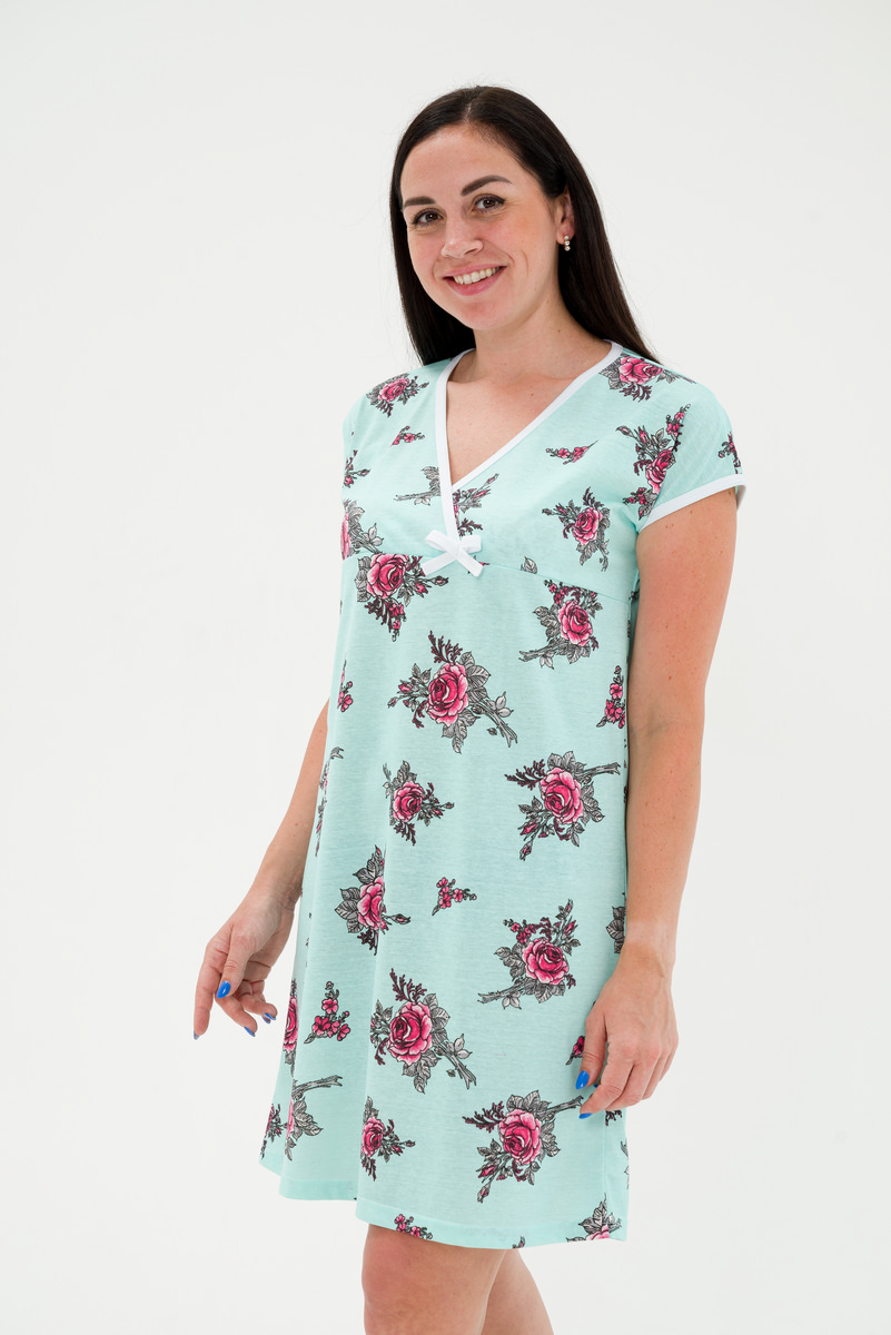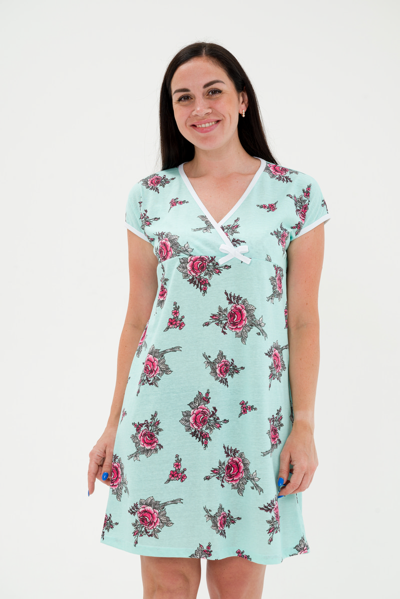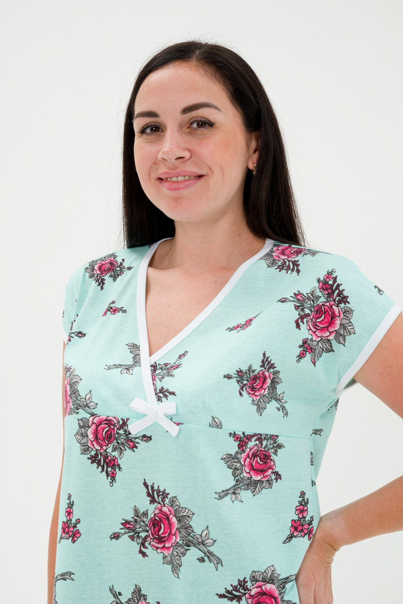 Ночная сорочка из кулирки Социал спущенное плечо розы на фисташковом