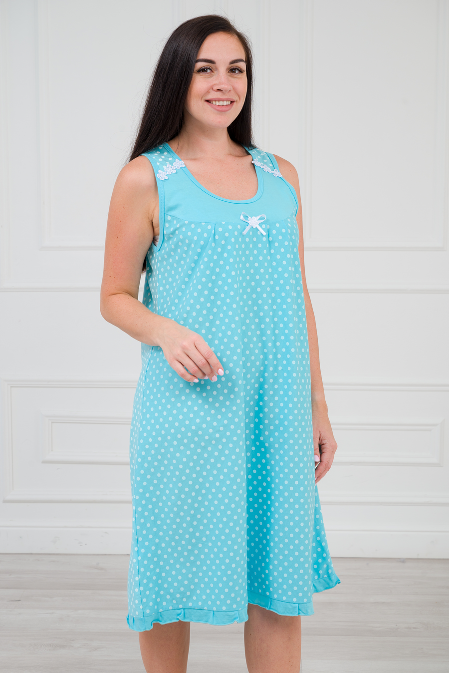 Ночная сорочка из кулирки Василиса горох на бирюзе