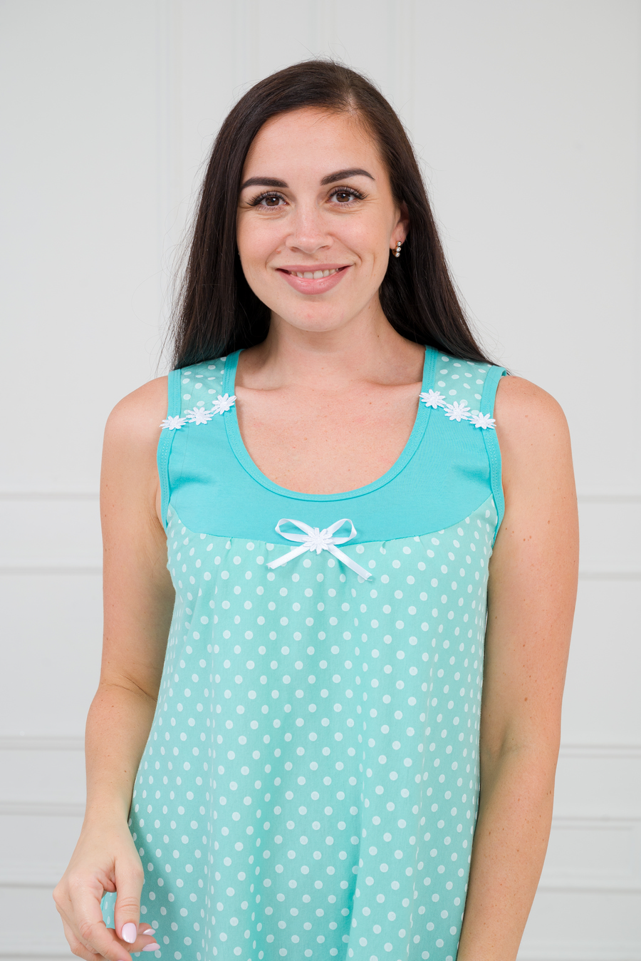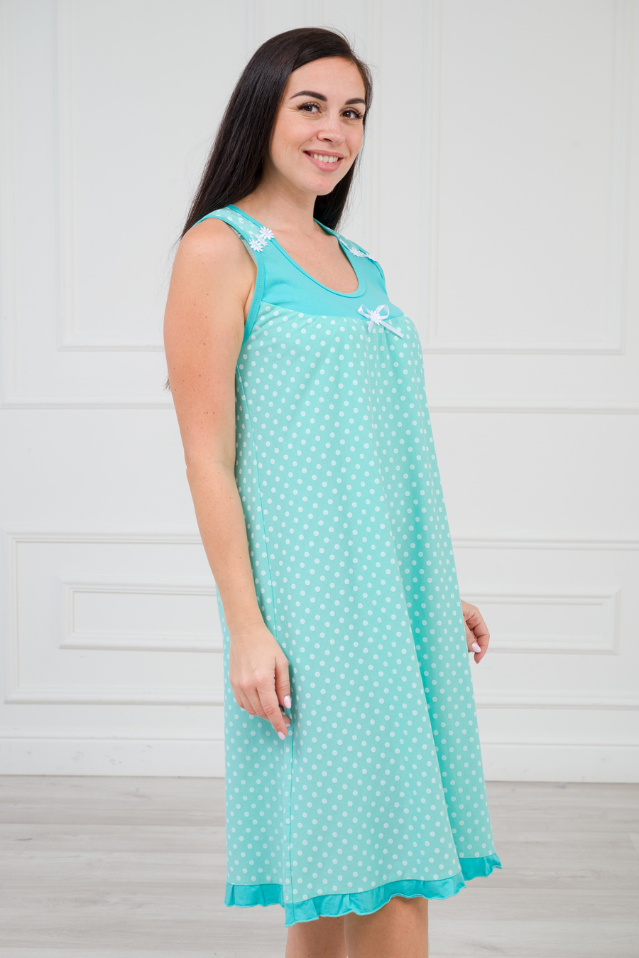 Ночная сорочка из кулирки Василиса горох на зеленом
