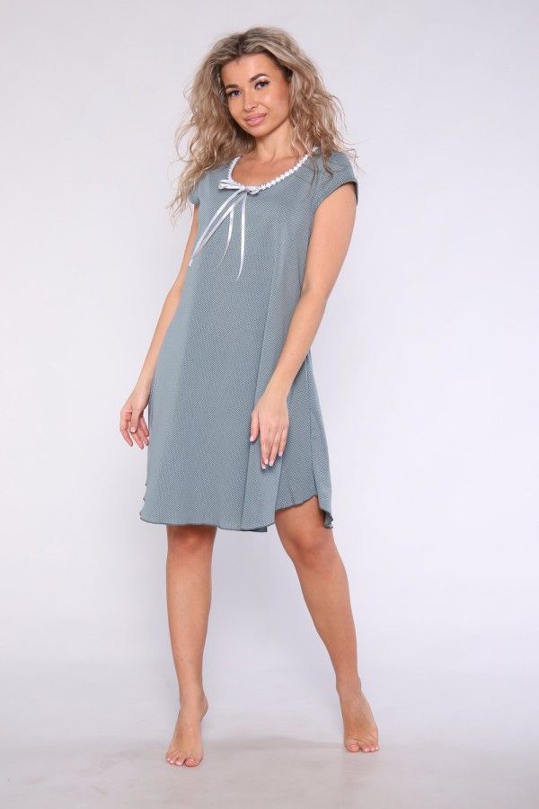 Ткань: кулирка; Состав: 100% хлопок; Сезонность: зима, весна, лето, осень; Рукав: короткий рукав; Стиль: домашний; Производство: г. Иваново, швейное производство НАТАЛИ; Тип изделия: сорочки; Цвет: фисташковый