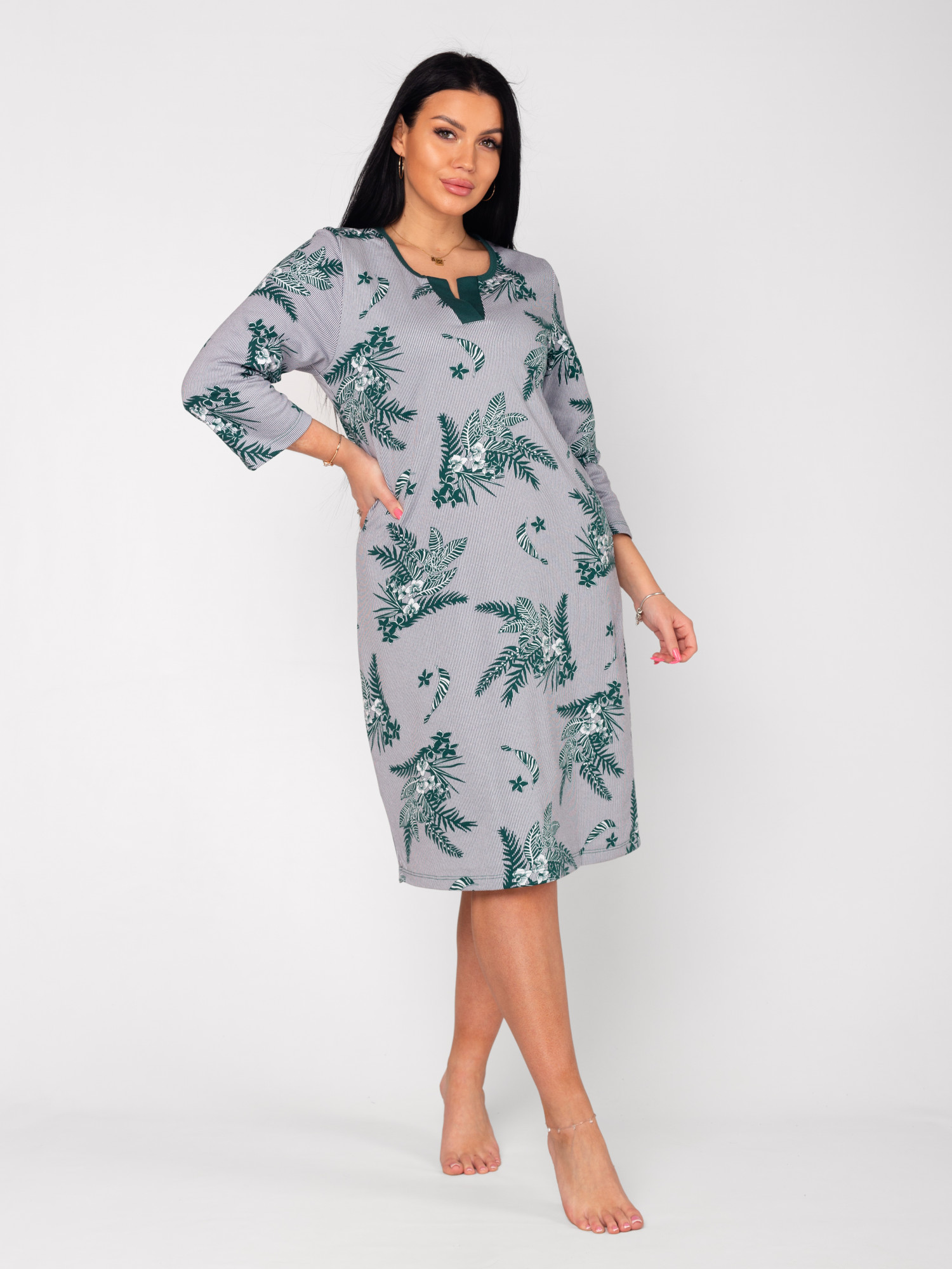 Ночная сорочка женская футер начёс "ЭЛЕГИЯ" ЗЕЛЕНЬ