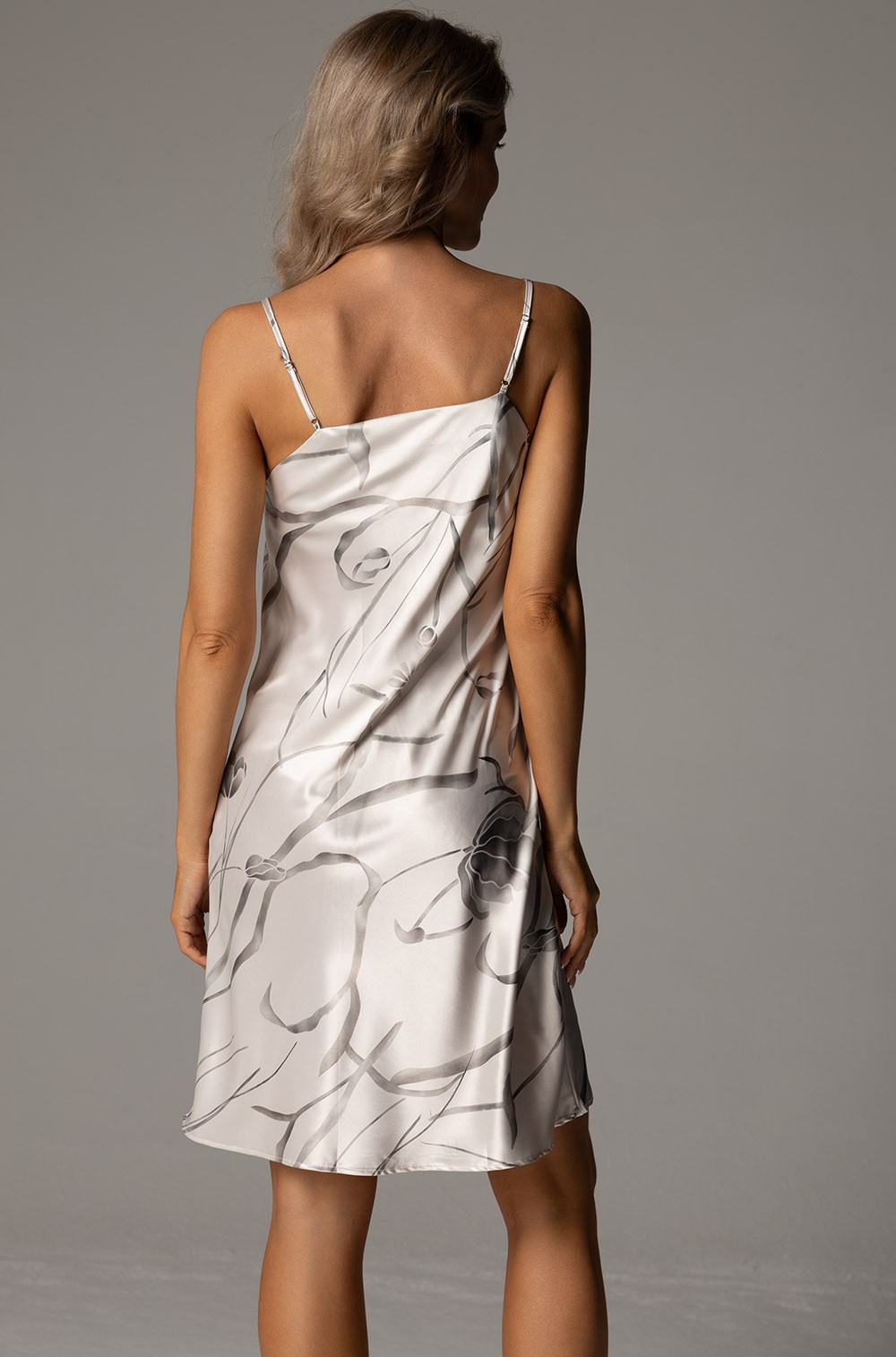 Короткая сорочка Mia-Amore на тонких бретелях без подреза под грудью выполнена из принтованного смесового полотна.
