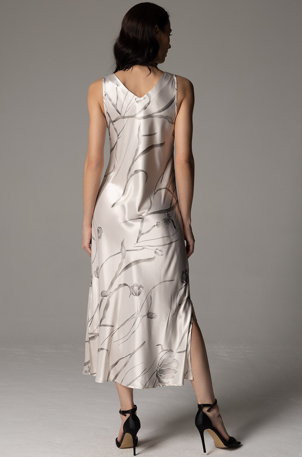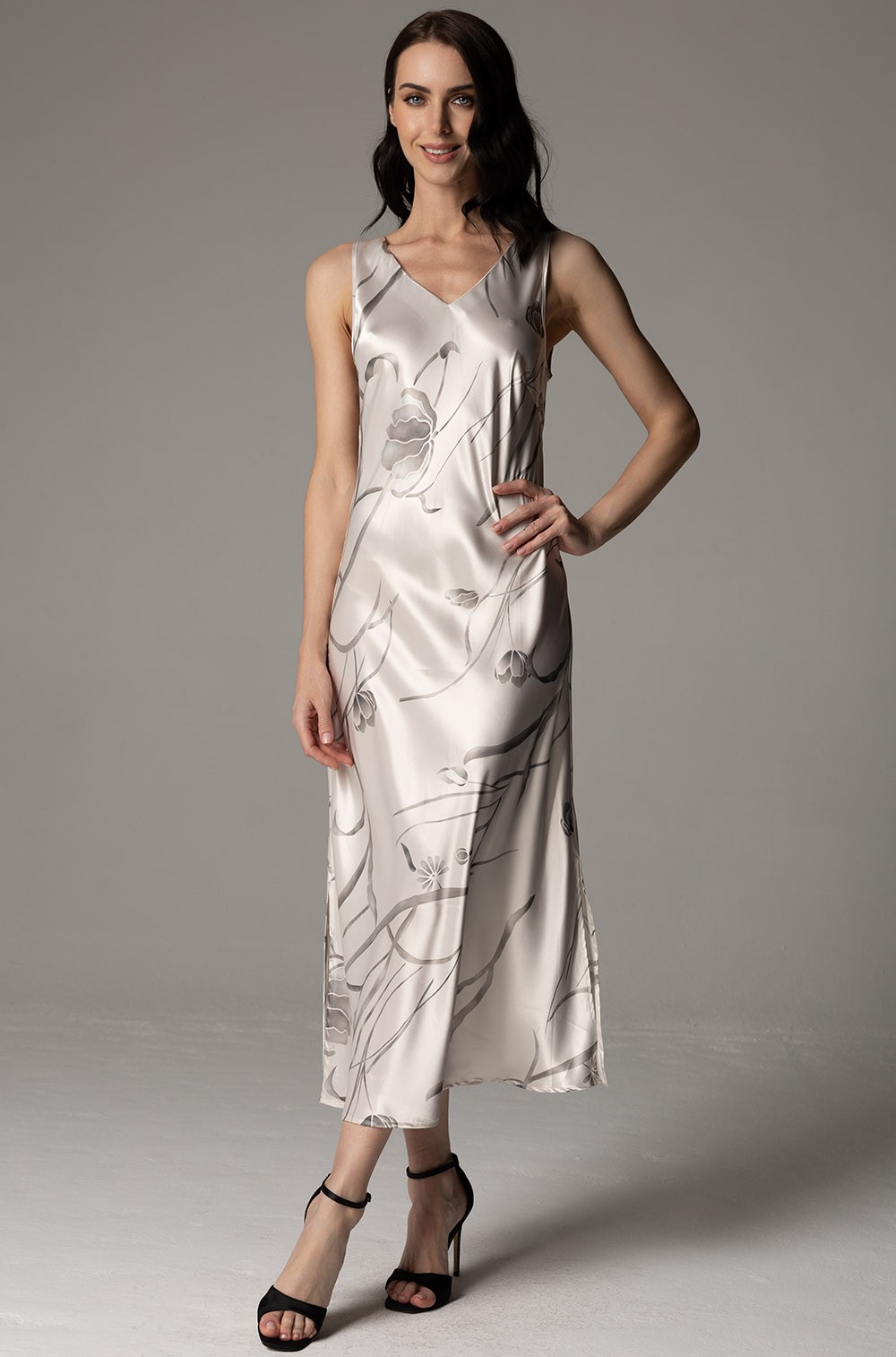 Классическая длинная сорочка Mia-Amore с вертикальными рельефами и широкими бретелями выполнена из принтованного смесового шёлка.