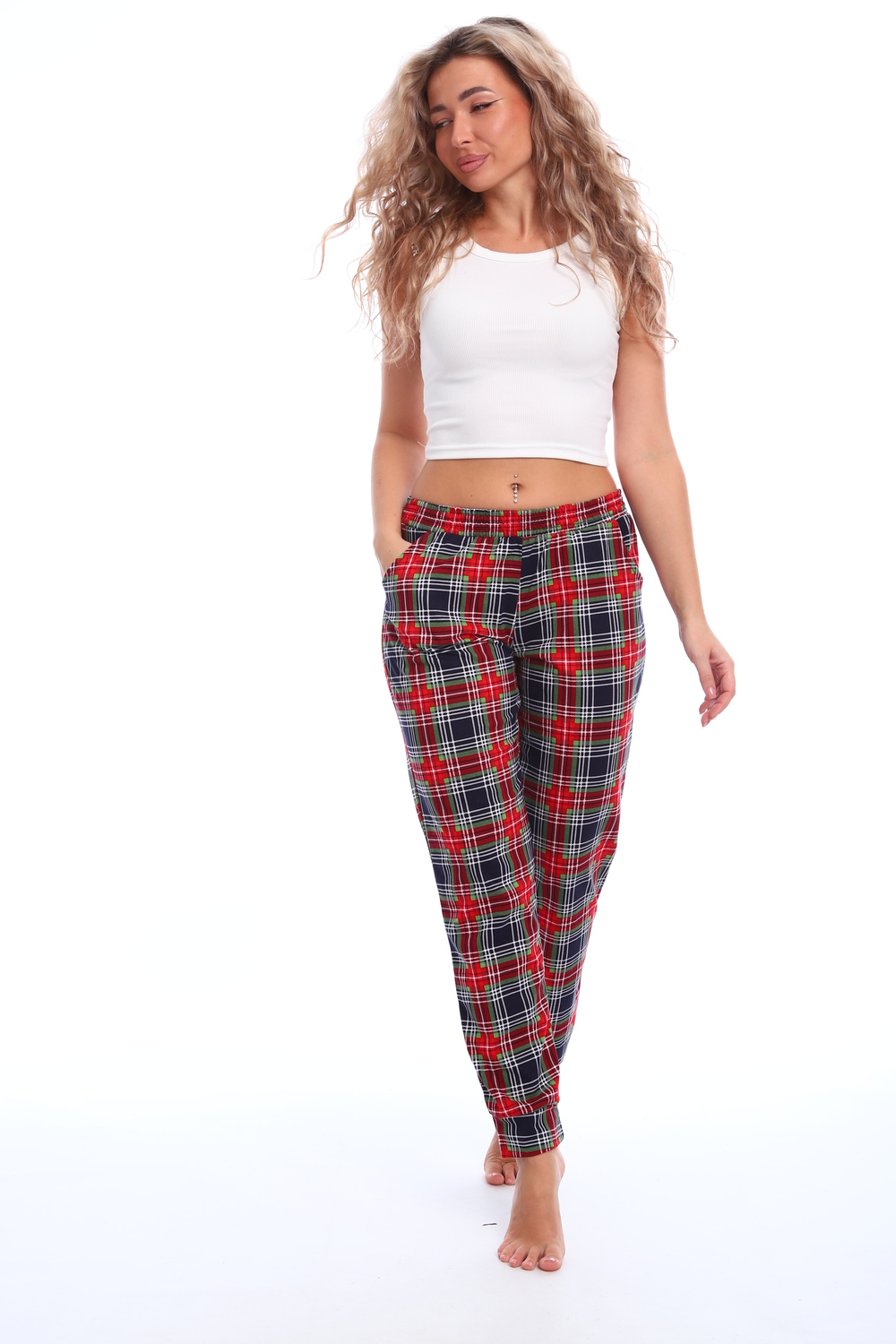 Женские брюки для дома созданы для максимального комфорта и уюта в повседневной жизни. Модель выполнена из мягкого текстиля на основе хлопка, что делает изделие особенно легким и приятным к телу. Трикотажные штаны с резинкой на поясе обеспечивают отличную посадку по фигуре, не стесняют движений и подходят для разных размеров, в том числе больших. Это отличный выбор одежды для сна или отдыха после насыщенного дня. Цвет: красный-синий;зеленый/красный; Материал: кулирка;кулирка; Состав: Хлопок 100%.