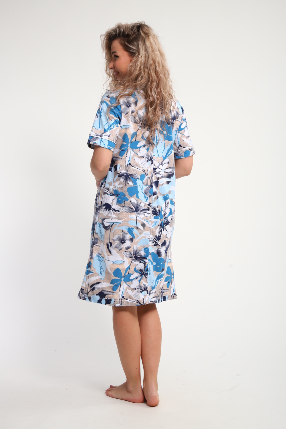 Почувствуйте себя комфортно и уютно каждый день с этим женским домашним халатом миди на молнии. Модель, декорированная романтичным принтом с цветами по всей поверхности, станет ярким акцентом вашего домашнего гардероба и подарит отличное настроение. Цвет: голубые цветы;черный/белый Дым;синий/красный/белый Полосы с буквами Love;Пончики зеленый; Материал: кулирка;кулирка; Состав: Хлопок 100%.