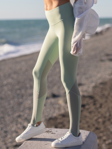 Женские легинсы нежного мятного цвета. Плоские прочные швы, ластовица, двойной утягивающий пояс, сетчатые вставки для воздухообмена. Особенность модели – отверстия для пятки, что позволяет фиксировать легинсы на ноге, они не закатываются и не задираются. Это важно для занятий йогой, стретчингом, пилатесом. В этой цветовой гамме есть топ - бра BF-26 и ветровка MF-116, что составляет легинсам замечательную компанию