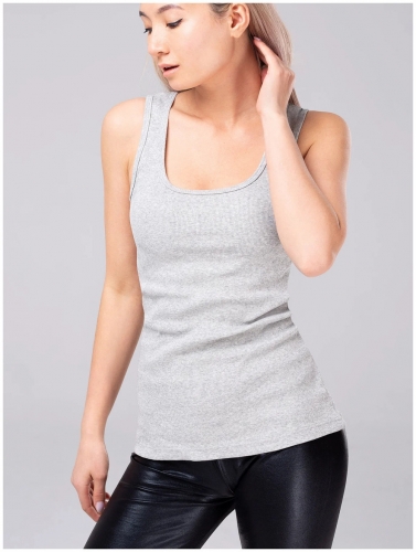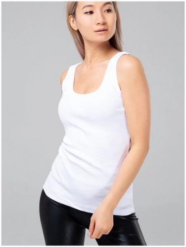 Женская классическая майка в мелкий рубчик, на широких лямках – необходимая и универсальная вещь в каждом гардеробе. Выполнена из хлопка с эластаном, в базовых расцветках: белой, черной, серой меланж. Состав: 95% хлопок, 5% эластан