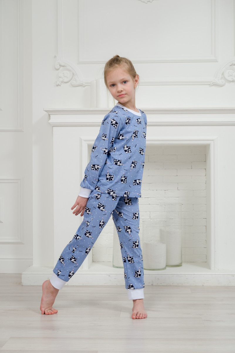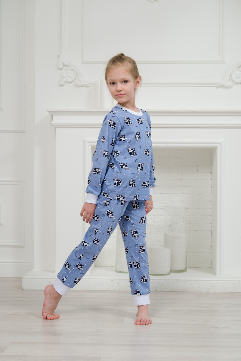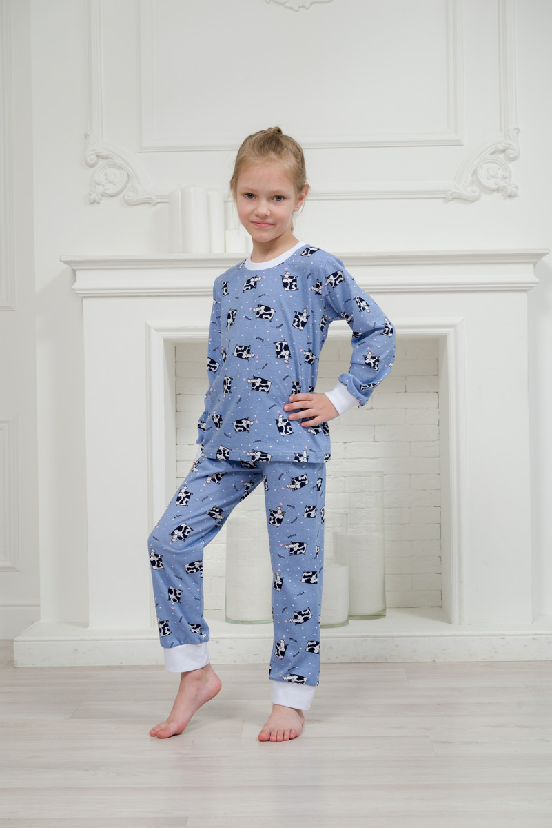 Пижама детская из джемпера и брюк из кулирки Коровы голубой
