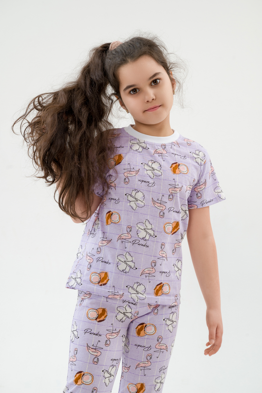 Пижама детская из футболки и брюк из кулирки Фламинго