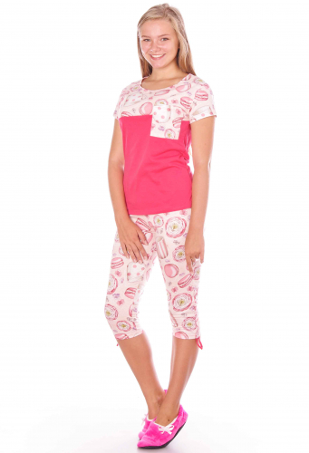 Очень эффектная пижамка для сна и домашнего отдыха с принтом "хищницы" подойдёт для невероятных обольстительниц! Футболка прямого кроя, с коротеньким рукавом и шортики с боковыми карманами.